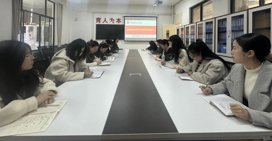 2026. 03为深入研究新文科建设与智慧教育融合下的大学英语课堂教学创新,突破传统课堂互动的局限,推动教学向深度互动和高效育人转变,2026年3月12日下午,基础部英语教研室在会议室举办了以“智慧教学环境下的教学互动设计研讨”为主题的教研活动。活动由张玉玲主任主持,教研室全体教师参与。张玉玲主任在活动开始时阐述了教研活动的背景和核心意义,强调智慧教学工具为大学英语课堂互动设计提供了多种可能性,但目前存在一些问题。她提出,...